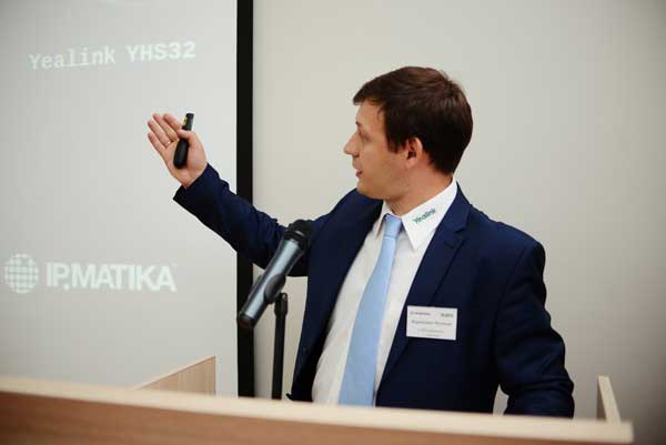 Конференция началась с рассказа генерального директора ООО "АйПиМатика" Михаила Усова о компаниях АйПиМатика и Yealink.